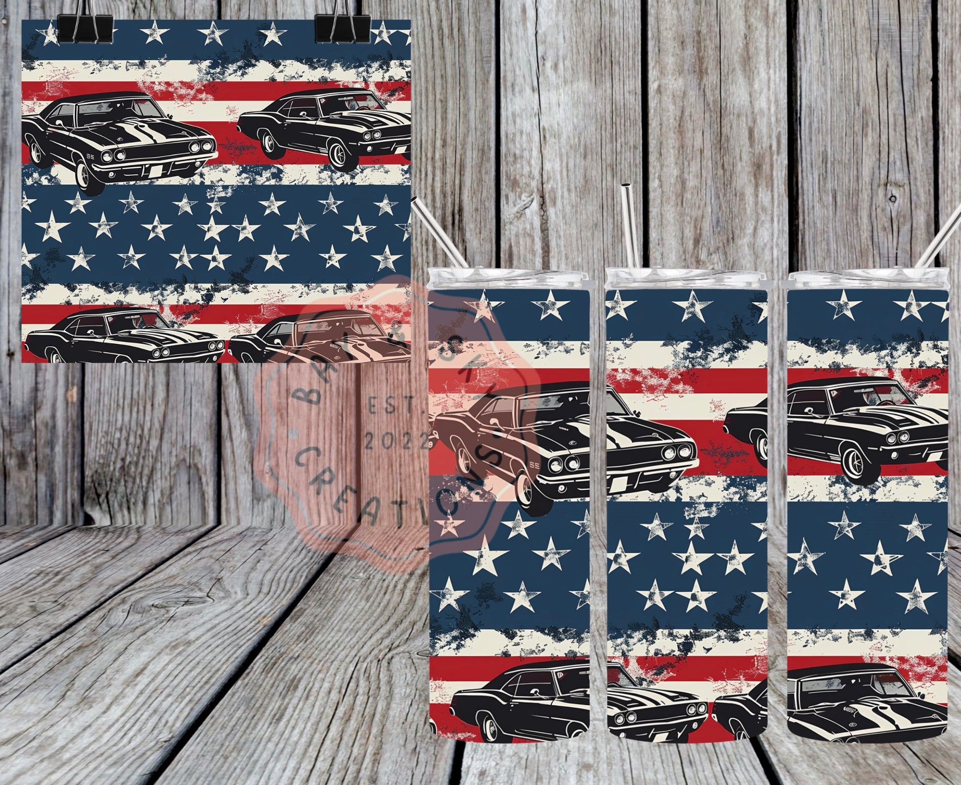 Patriotic Muscle Cars Tumblers